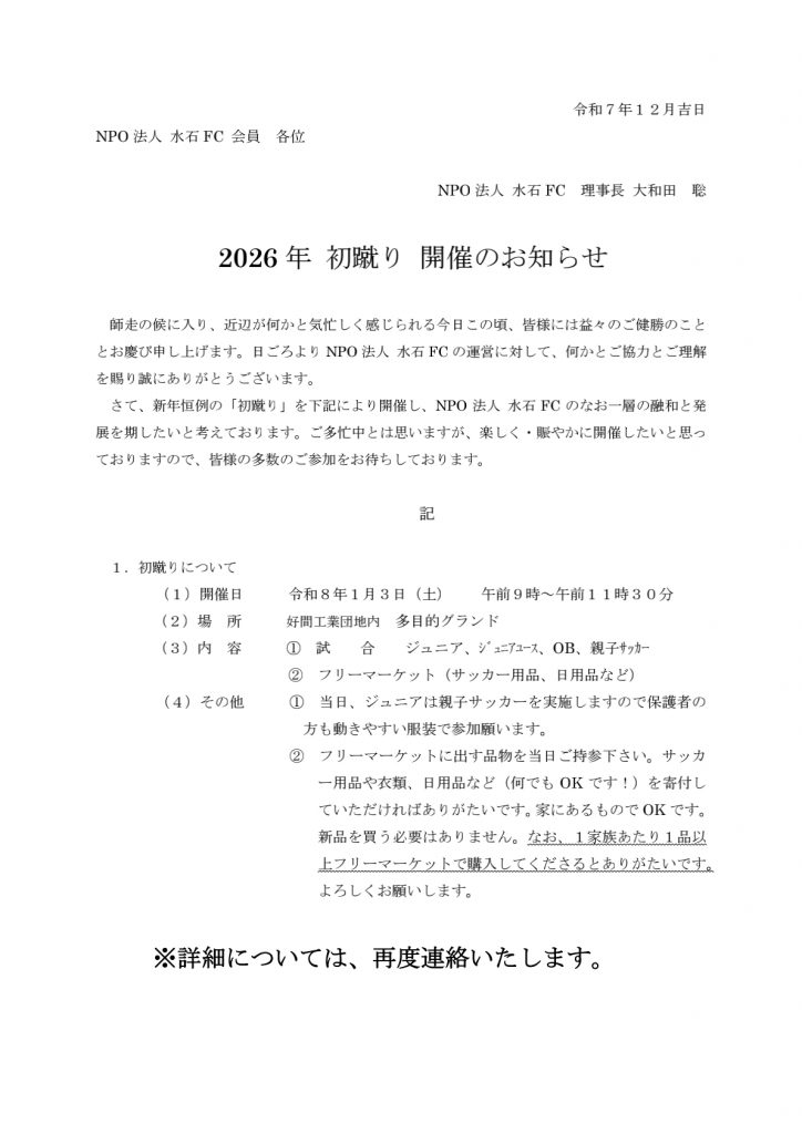 R8 初蹴りは1月3日(土)です!